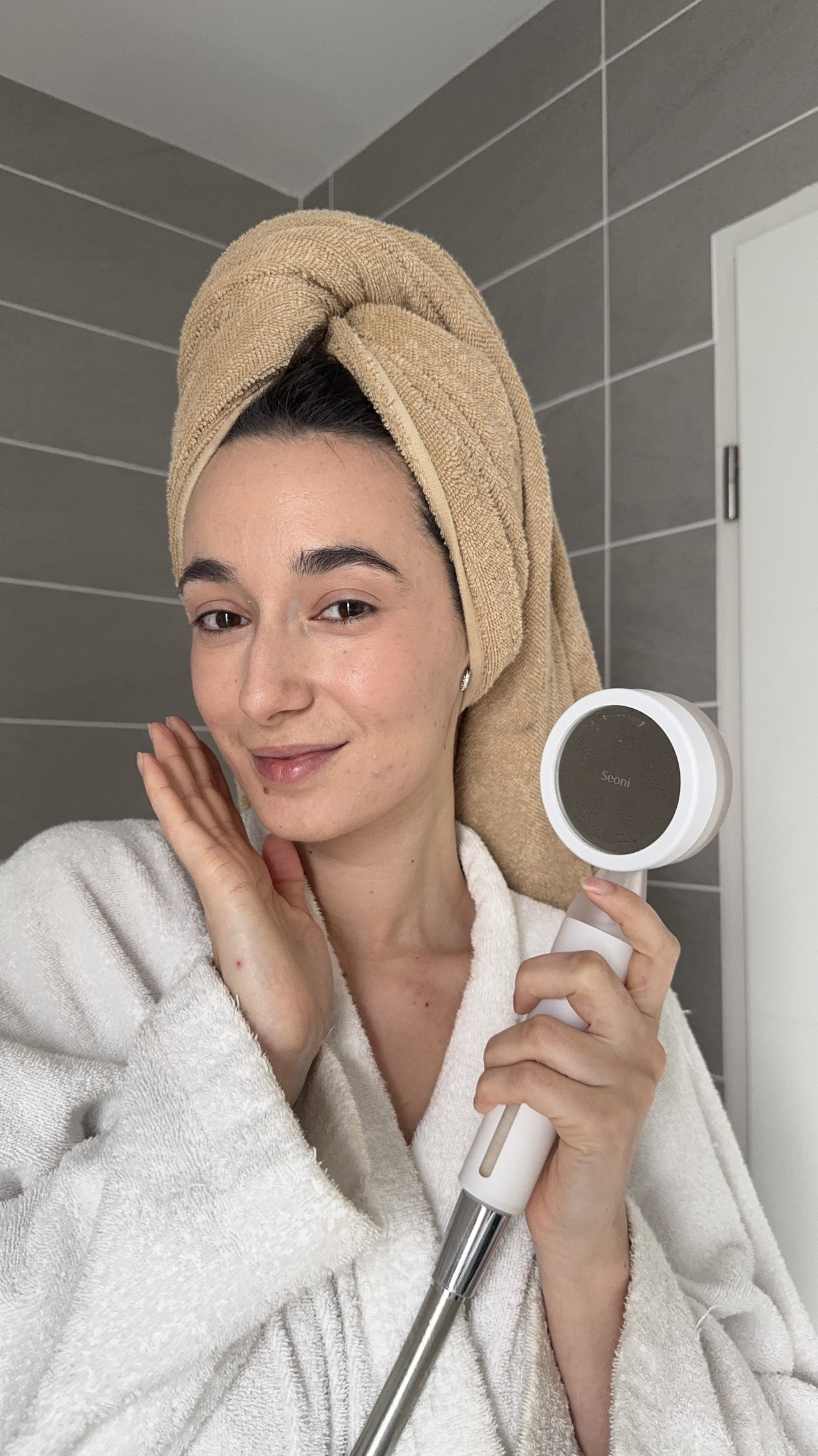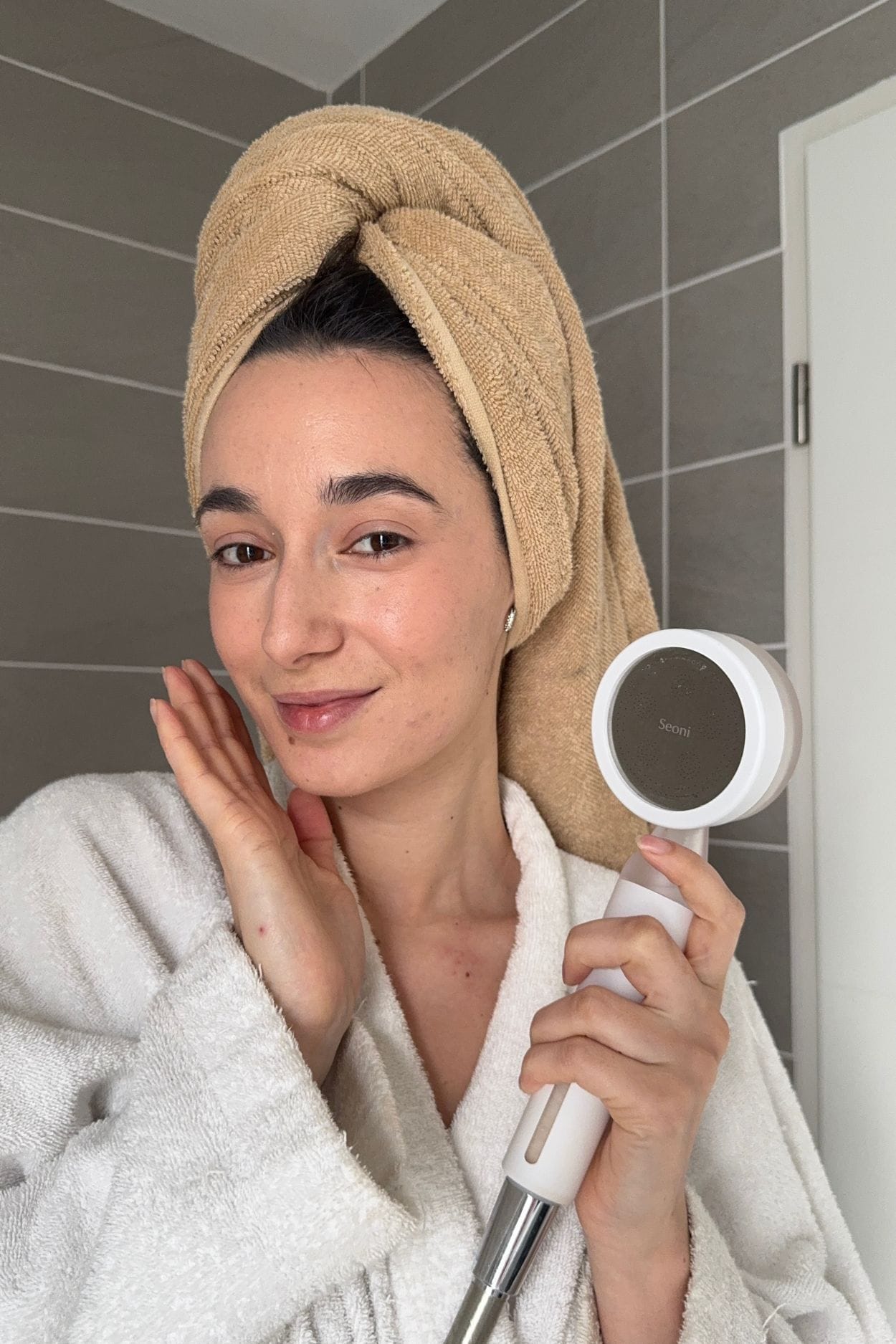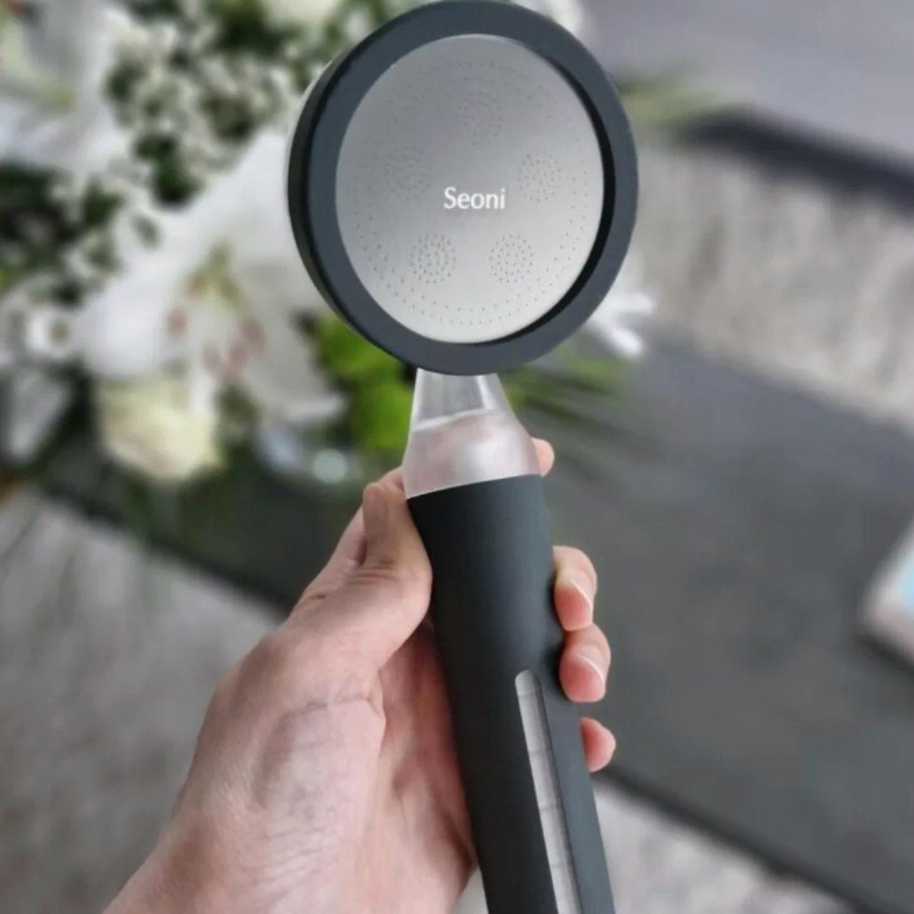 Seoni est un pommeau de douche filtrant qui purifie l’eau pour une peau et des cheveux plus sains.